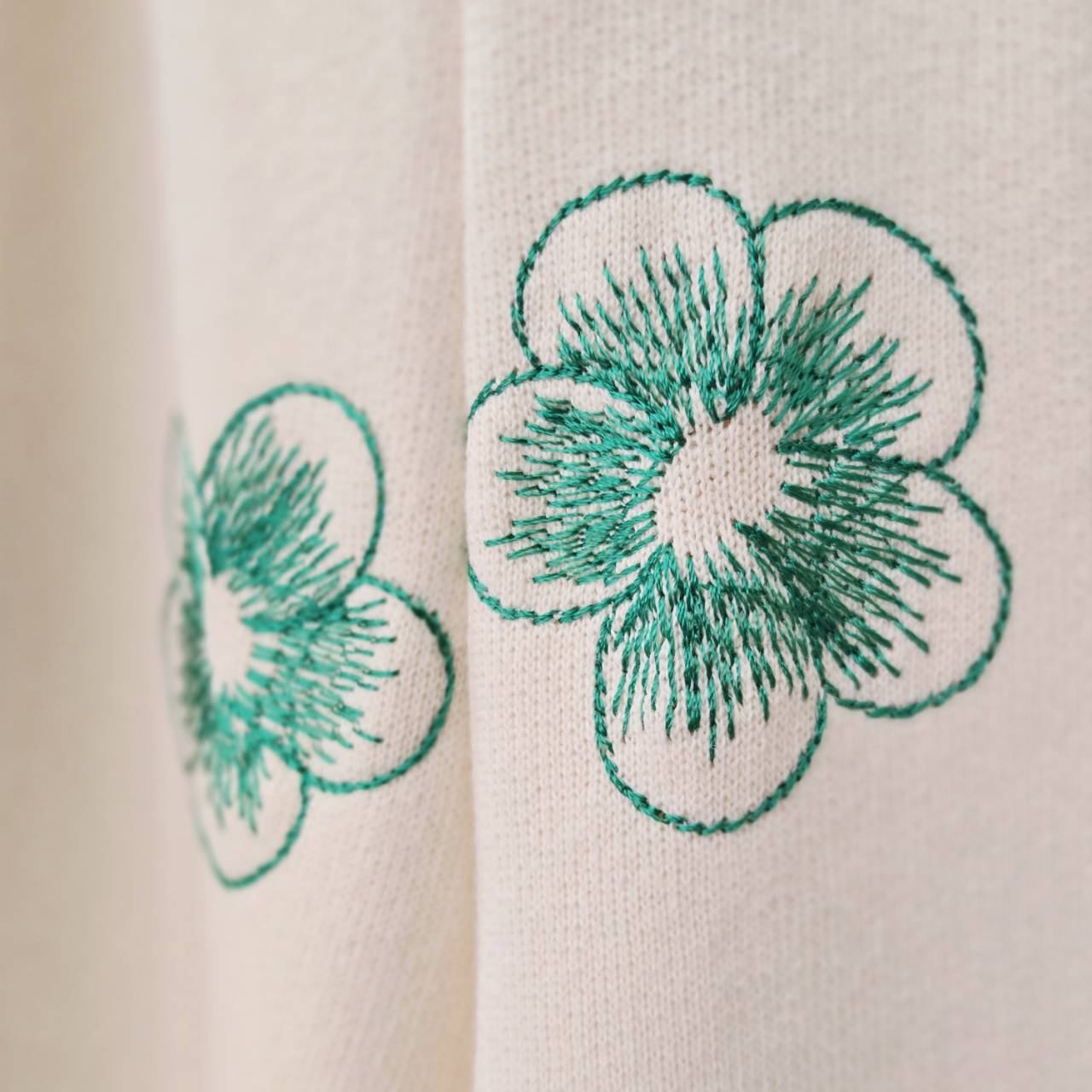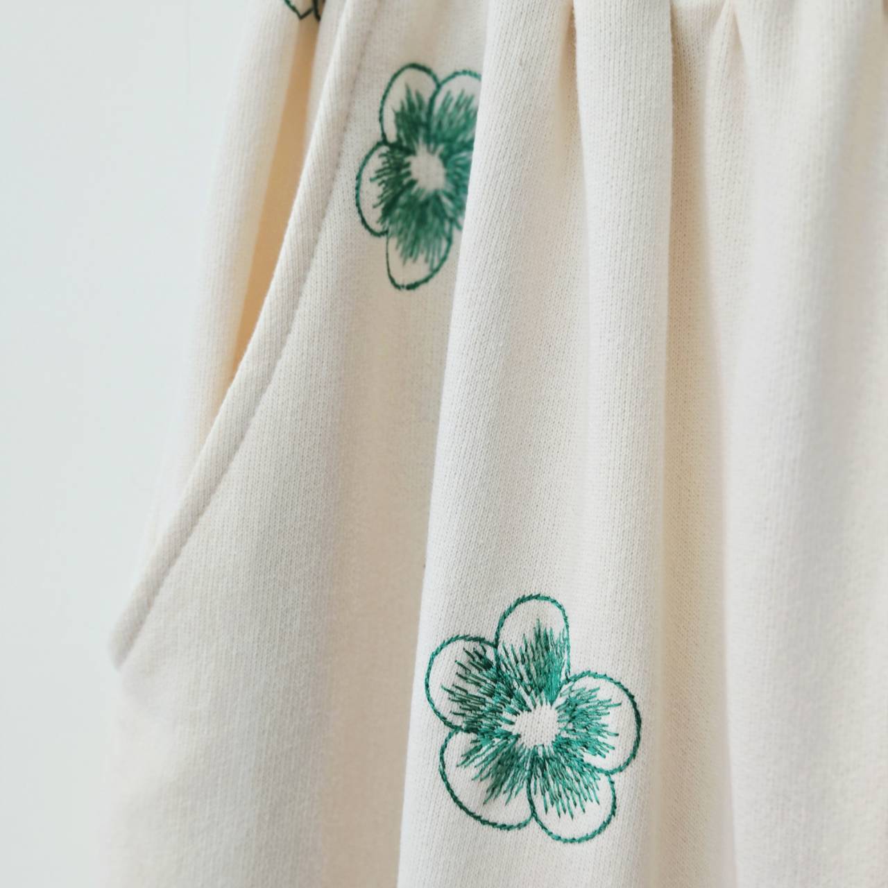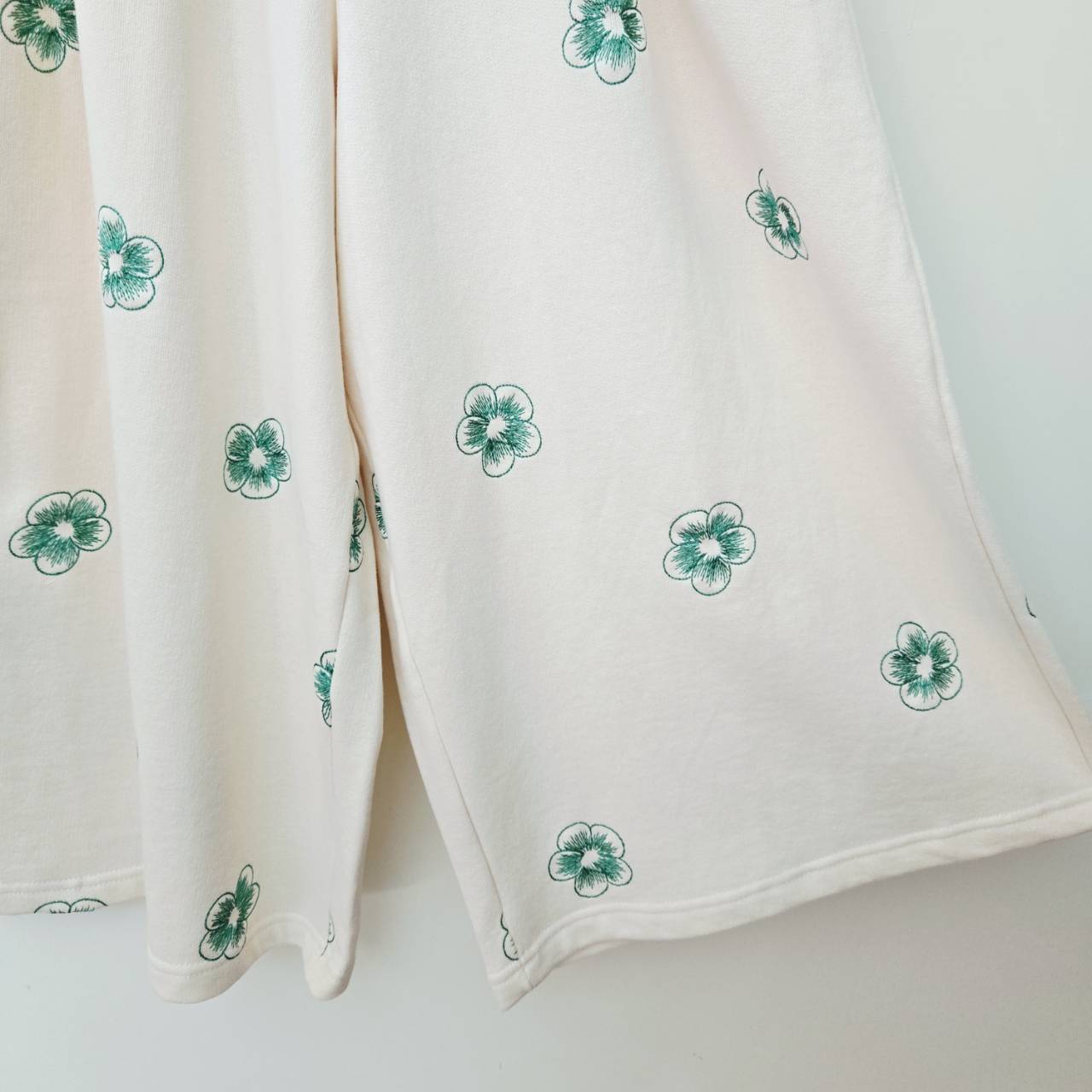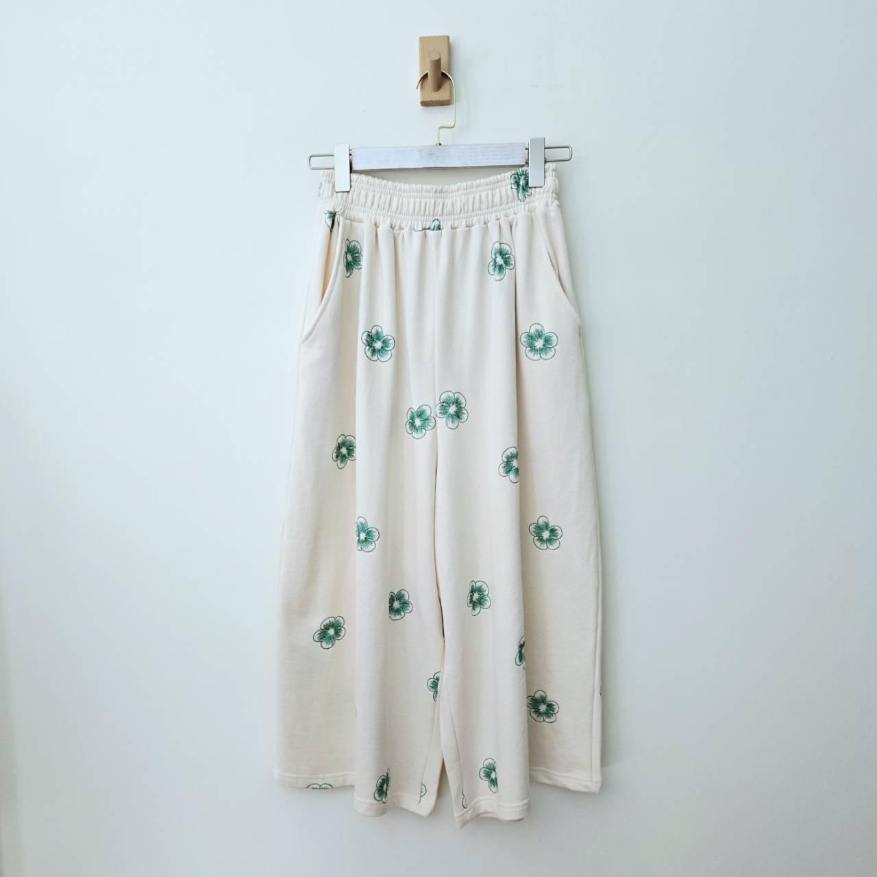純棉小花刺繡鬆緊寬褲